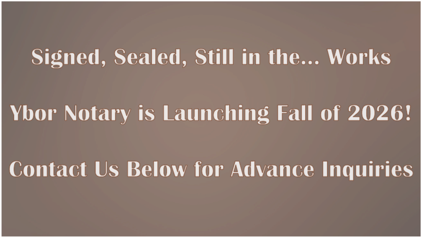 Signed, Sealed, Still in the... Works  Ybor Notary is Launching Fall of 2026!  Contact Us Below for Advance Inquiries